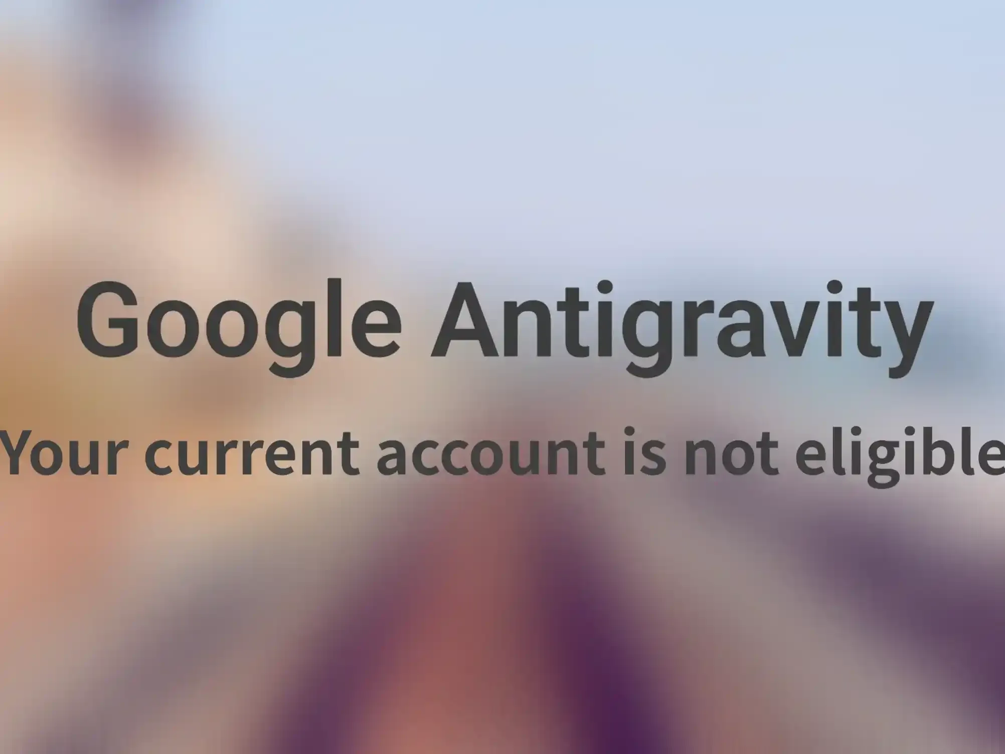 Your current account is not eligible for Antigravity. Try signing in with another personal Google account.